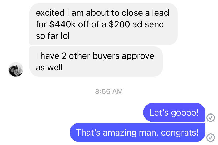Wendell sold a home for $440k and had 2 other buyers approve after investing $200 into the lead generation system.